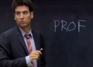 At the actual first day of class, Ted starts writing, "Professor